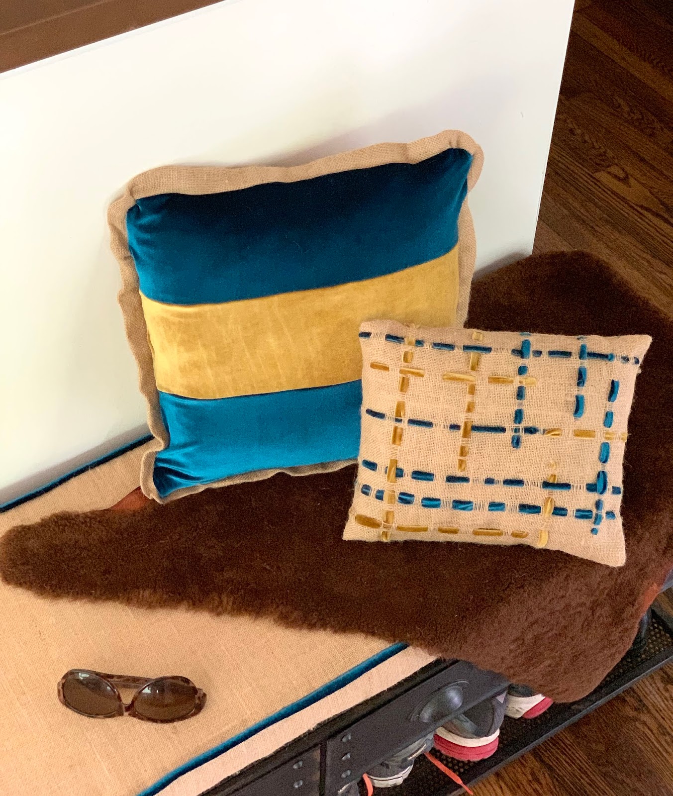 But, back to the apron. I wanted to give the apron a little color, so I added a trim of Turquoise Ottertex Marine Vinyl to the pocket and other areas. They come in a lot of fun colors but can be a bit difficult to sew since the foot of my sewing machine stuck to the vinyl. I ended up hand sewing some of the details.